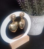 Romantične i upečatljive, ove zlatne naušnice sa motivom srca savršen su izbor za sve dame koje žele da izraze nježnost i stil u isto vrijeme. Sjajna završna obrada daje im glamurozan izgled, dok njihov moderan dizajn čini da se lako kombinuju sa različitim outfitima.