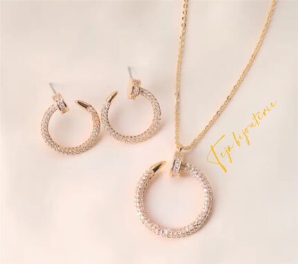 Dodajte dašak elegancije svakom izgledu sa setom , koje kombiniraju sofisticiranost cirkona i toplinu zlata. Izrađene od nehrđajućeg čelika, ovaj set je savršen izbor za svečane prilike ili kao chic detalj vašoj svakodnevnoj odjeći. Idealne su kao poklon dragoj osobi ili kao luksuzan poklon sebi. Ovim setom uveličajte svečani događaj koji ćete pamtiti cijelog života.